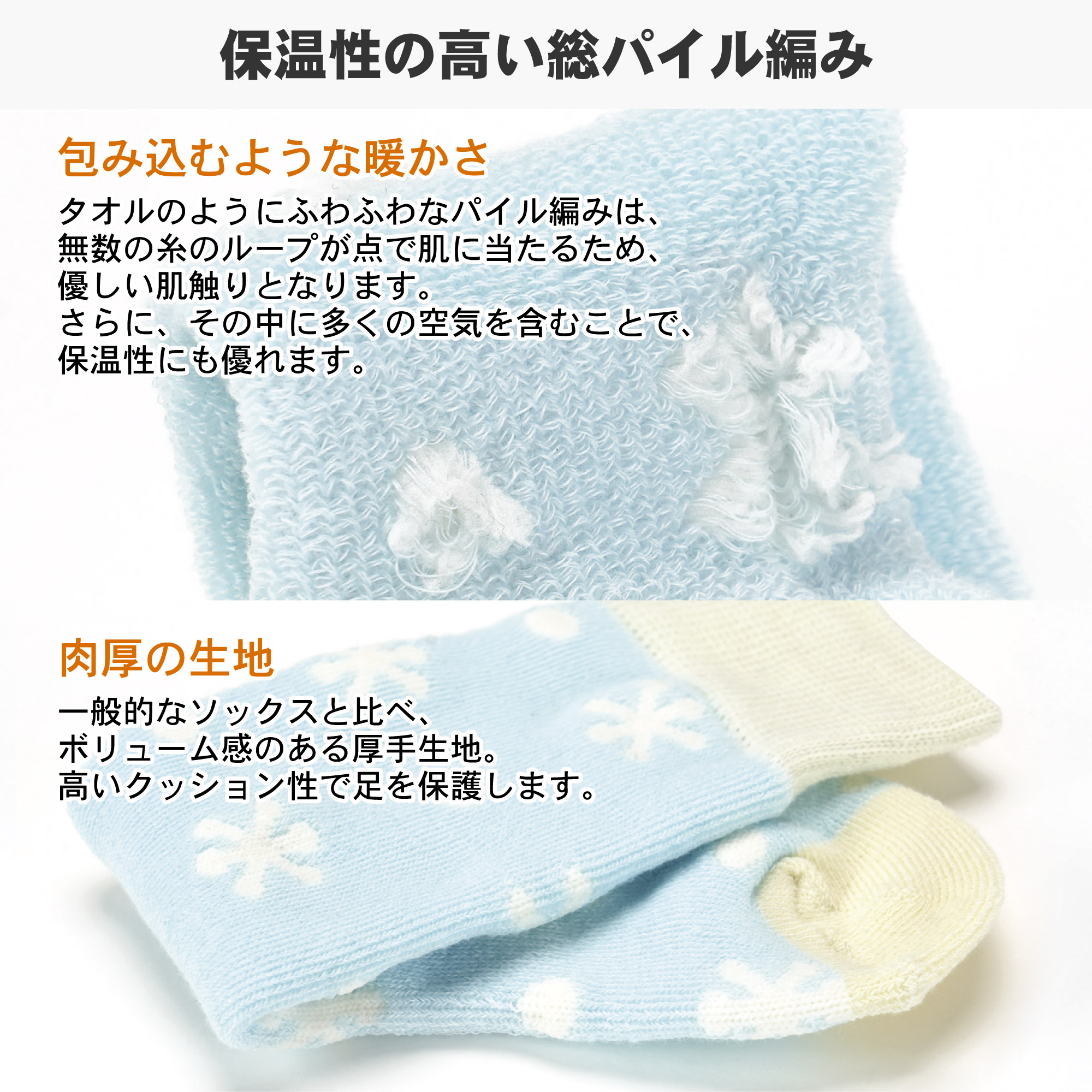 パイル編みでクッション性と保温性を両立
