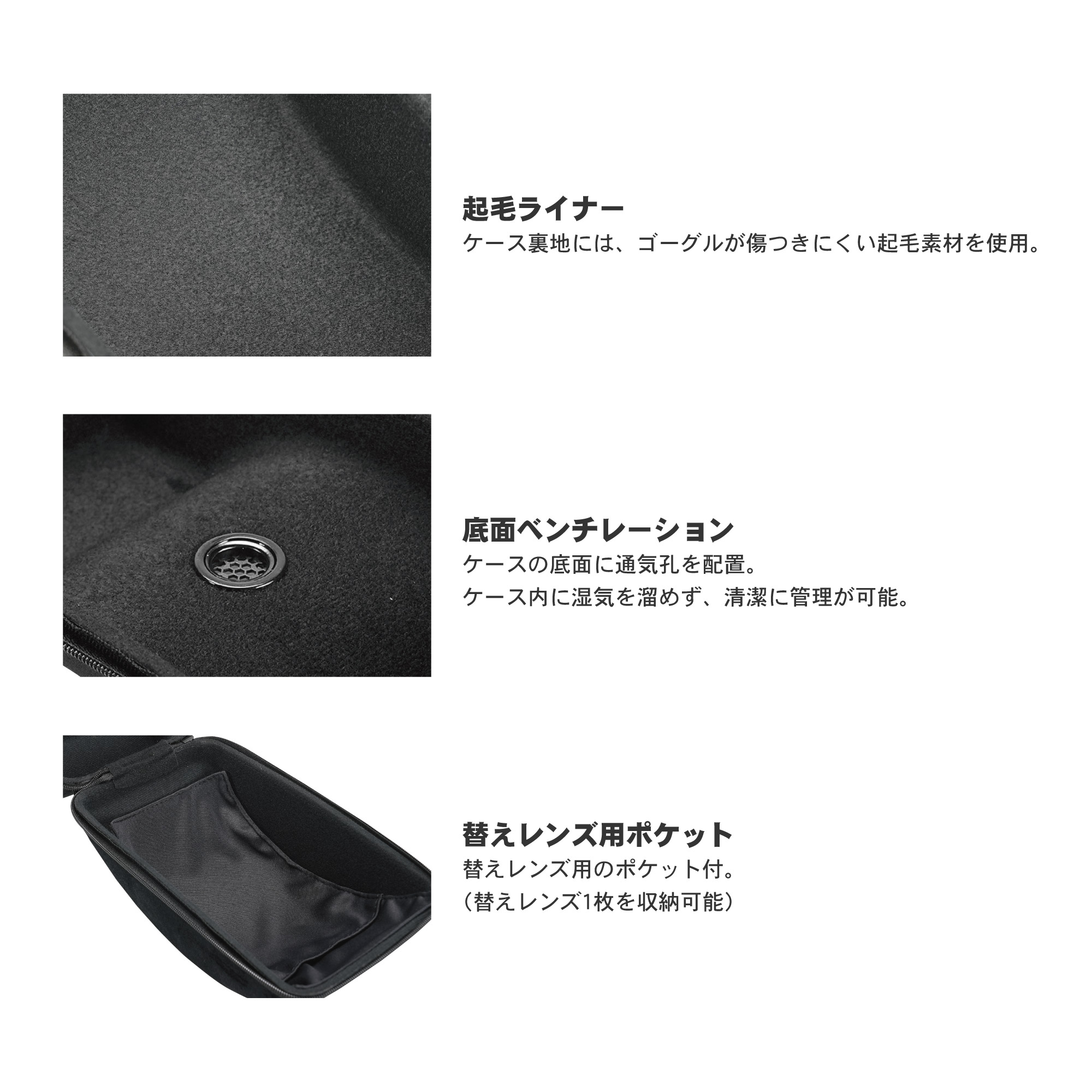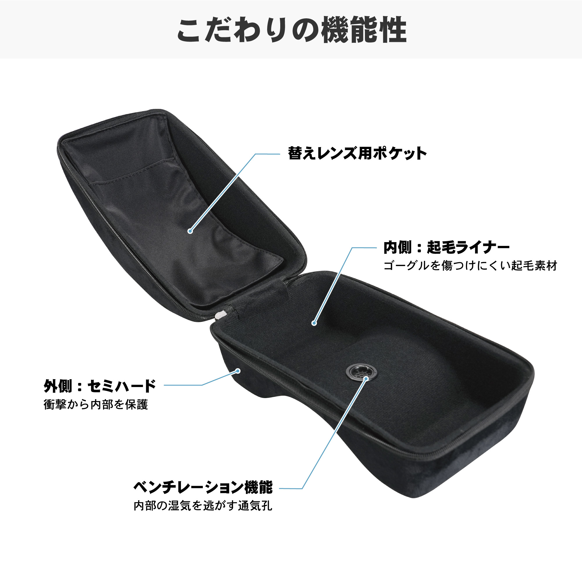 ゆとりある大きさで大型レンズも収納可能なゴーグルケース。