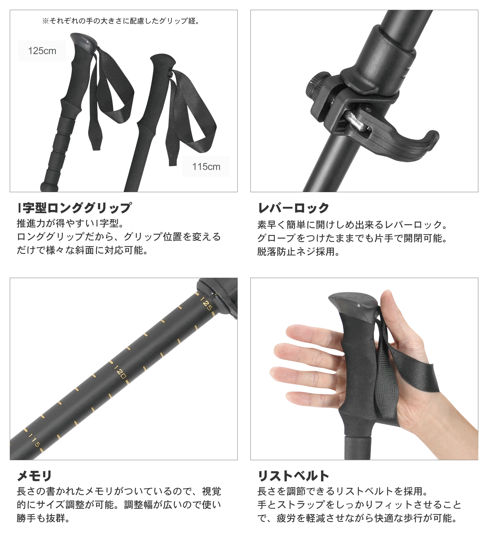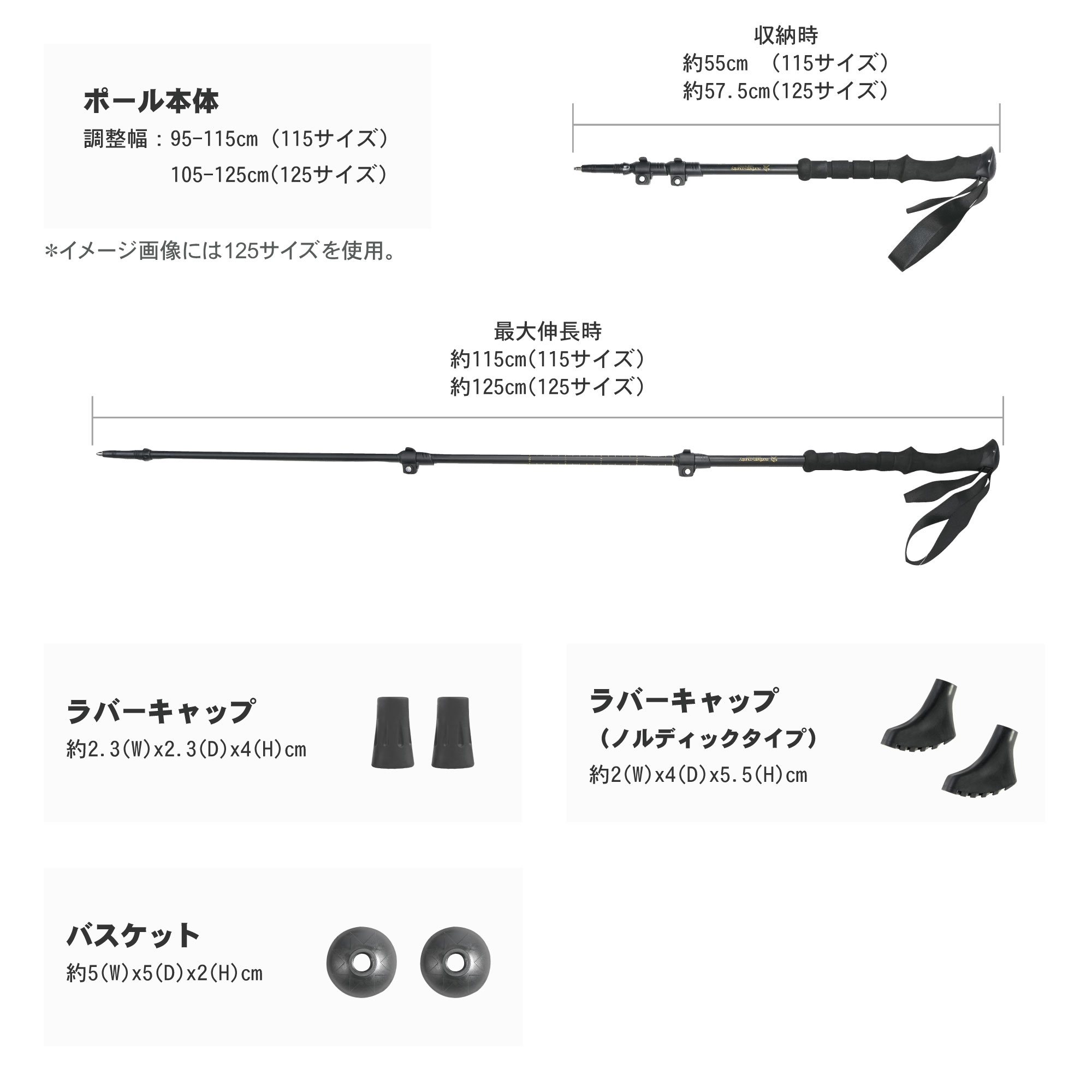 ・使用サイズ:125cm:105~125cm (収納時:約57.5cm)/115cm:95-115cm(収納時:約55cm)