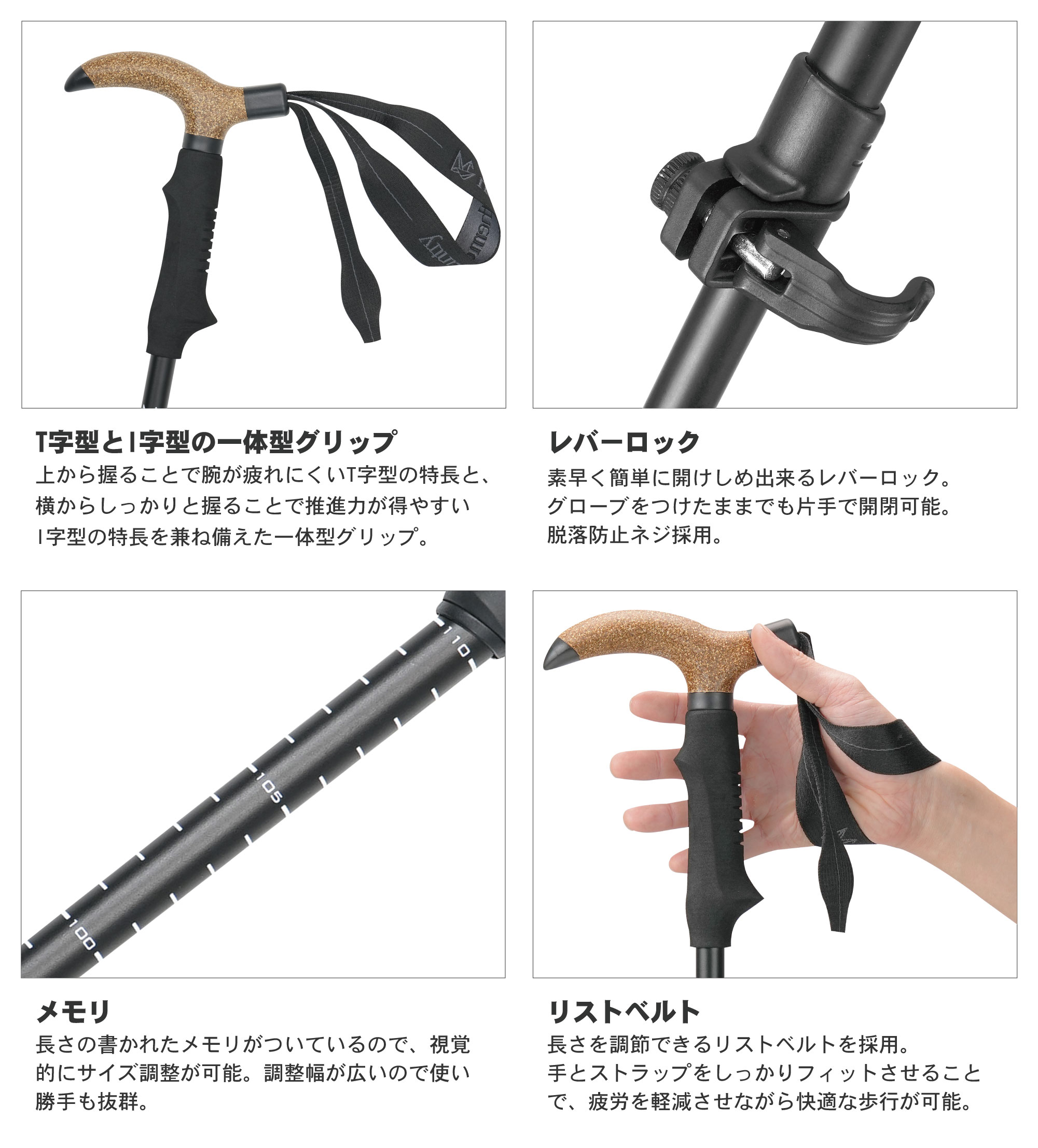 状況に応じて握り方を変えられるI型とT型の2WAYグリップ。