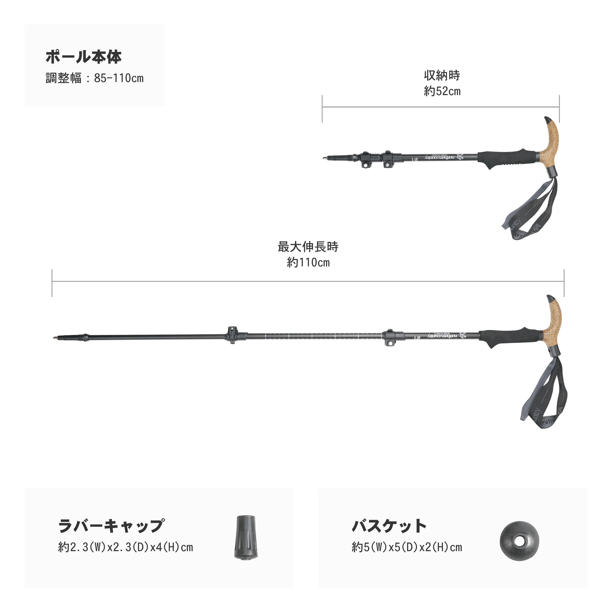 ・使用サイズ:110cm:85~110cm (収納時:約52cm)